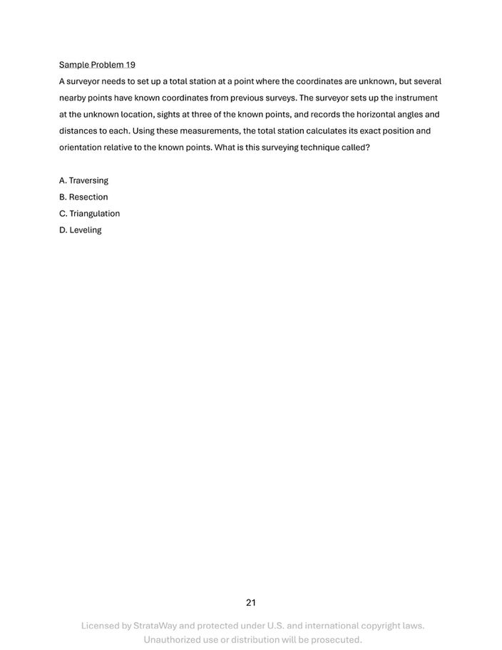 The CA Civil PE Exam Surveying Companion contains 75 carefully crafted, exam-style conceptual problems - no calculations, just pure theory - each one designed to challenge your grasp of surveying principles.